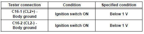CAUTION: Never connect a tester to the curtain shield airbag assembly LH (Rear curtain shield squib LH) for measurement, as this may lead to a serious injury due to airbag deployment.