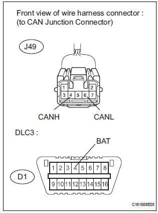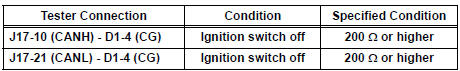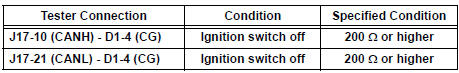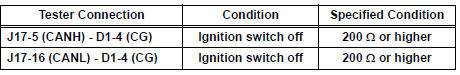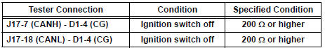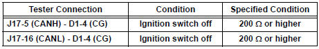 HINT: Operating the ignition switch, any switches, or any doors triggers related ECU and sensor communication with the CAN. This communication will cause the resistance value to change.