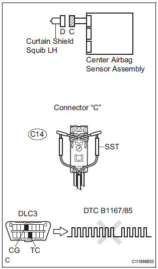 HINT: Codes other than DTC B1167/85 may be output at this time, but they are not related to this check.