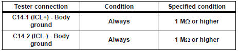 CAUTION: Never connect a tester to the curtain shield airbag assembly LH (curtain shield squib LH) for measurement, as this may lead to a serious injury due to airbag deployment.