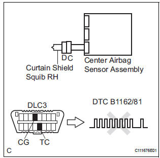 OK: DTC B1162/81 is not output. HINT: Codes other than DTC B1162/81 may be output at this time, but they are not related to this check.