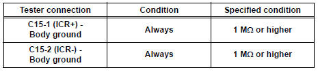 CAUTION: Never connect a tester to the curtain shield airbag assembly RH (Curtain shield squib RH) for measurement, as this may lead to a serious injury due to airbag deployment.
