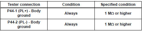 CAUTION: Never connect a tester to the front seat outer belt assembly LH (front pretensioner squib LH) for measurement, as this may lead to a serious injury due to airbag deployment.