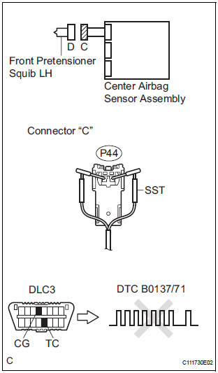 HINT: Codes other than DTC B0137/71 may be output at this time, but they are not related to this check.