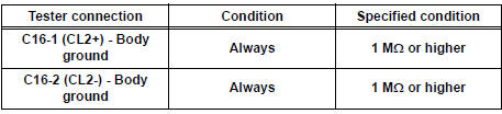 CAUTION: Never connect a tester to the curtain shield airbag assembly LH (Rear curtain shield squib LH) for measurement, as this may lead to a serious injury due to airbag deployment.