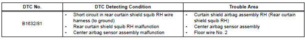 DTC B1632/81 is recorded when a short to ground is detected in the rear curtain shield squib RH circuit.