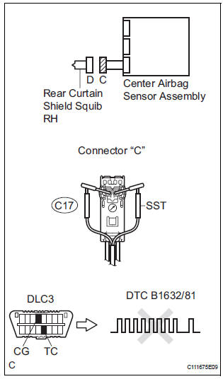 HINT: Codes other than DTC B1632/81 may be output at this time, but they are not related to this check.
