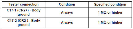 CAUTION: Never connect a tester to the curtain shield airbag assembly RH (Rear curtain shield squib RH) for measurement, as this may lead to a serious injury due to airbag deployment.