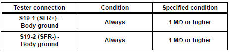 CAUTION: Never connect a tester to the front seat side airbag assembly RH (side squib RH) for measurement, as this may lead to a serious injury due to airbag deployment.