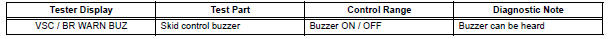 (c) Select the item "VSC / BR WARN BUZ" in the ACTIVE TEST and operate the skid control buzzer on the intelligent tester.