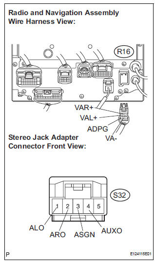 1 CHECK HARNESS AND CONNECTOR (RADIO AND NAVIGATION ASSEMBLY - STEREO JACK ADAPTER)