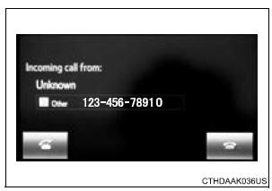 When a call is interrupted by a third party while talking, an incoming call message will be displayed.