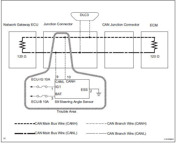 1 CHECK OPEN IN CAN BUS WIRE (STEERING ANGLE SENSOR BRANCH WIRE)