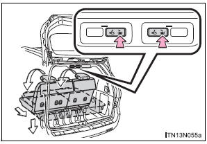 Toyota Sienna 2010-2025 Owners Manual: Stowing the third seats (power seats)