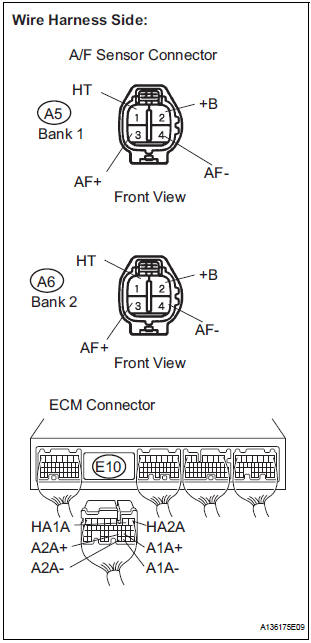 13 CHECK HARNESS AND CONNECTOR (A/F SENSOR - ECM)