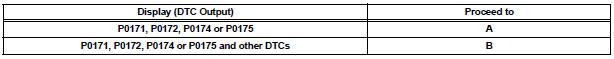 HINT: If any DTCs other than P0171, P0172, P0174 or P0175 are output, troubleshoot those DTCs first.
