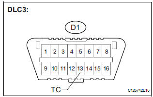 1 CHECK HARNESS AND CONNECTOR (TERMINAL TC of DLC3 - ECM)