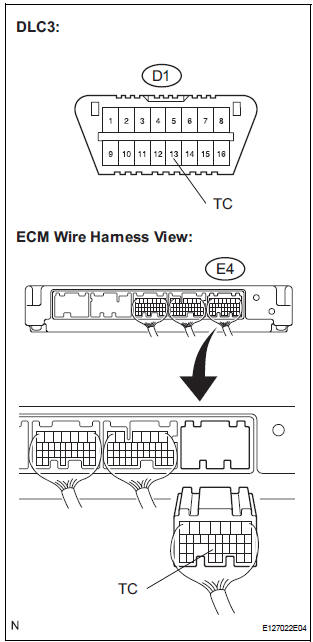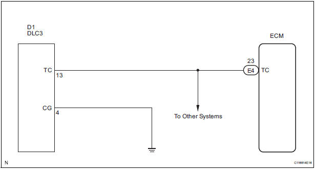 Connecting terminals TC and CG of the DLC3 causes the system to enter the self-diagnostic mode. If a malfunction is present, DTCs will be output.