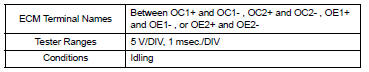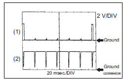If the waveform is not similar to that shown in the illustration, check the waveform again after idling for 10 minutes or more.