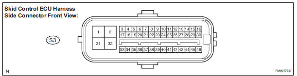 HINT: Voltage cannot be measured with the connector connected to the skid control ECU because the connector is watertight.