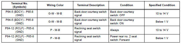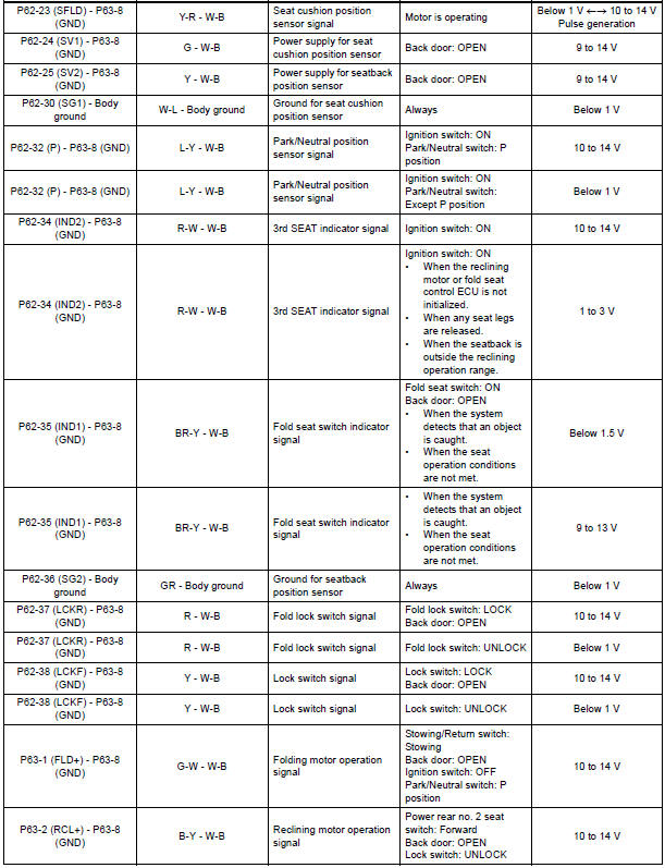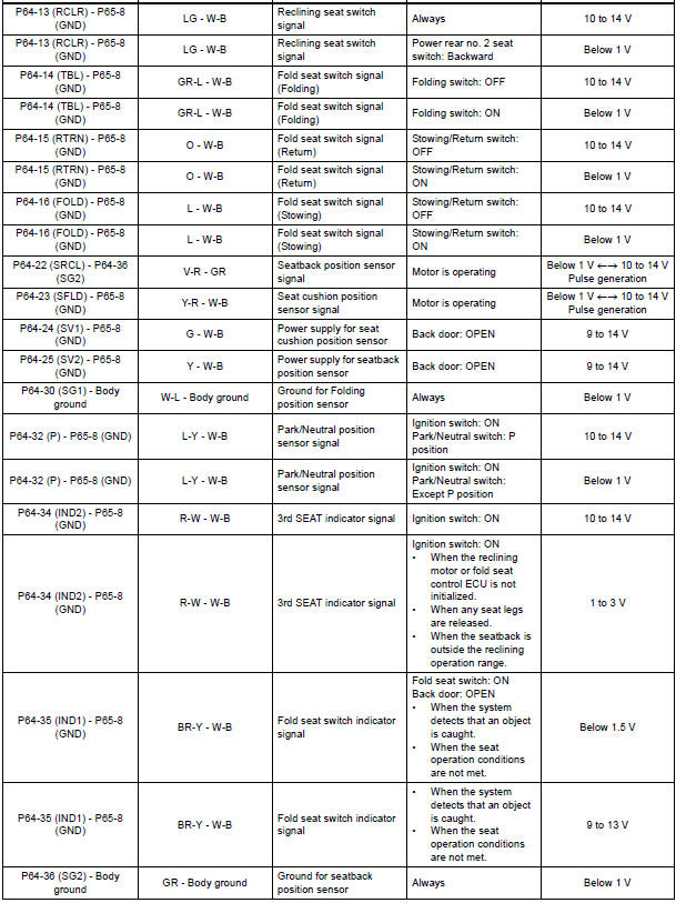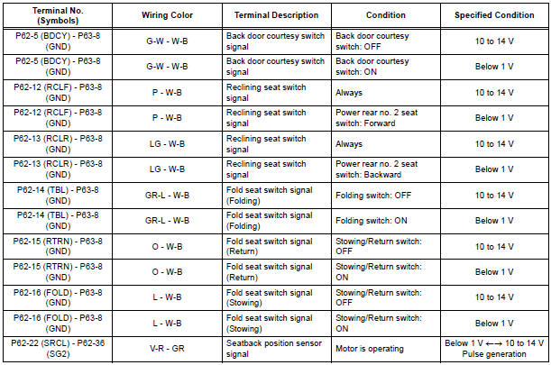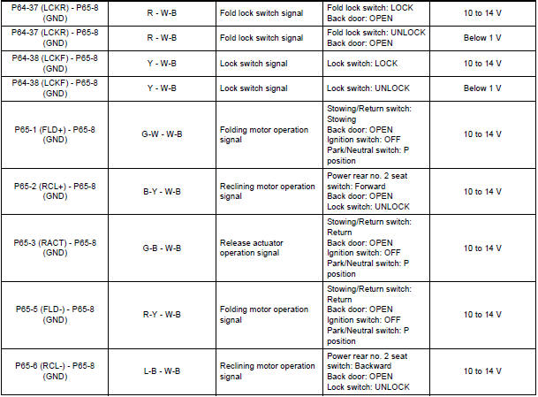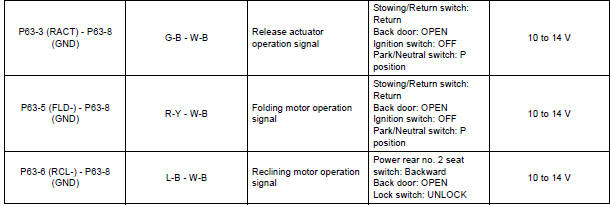 If the result is not as specified, the fold seat control ECU may have a malfunction.