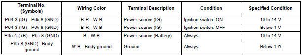 If the result is not as specified, there may be a malfunction on the wire harness side.
