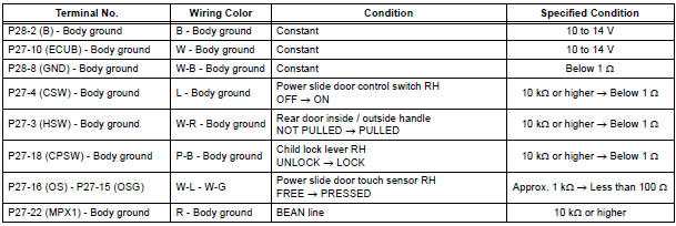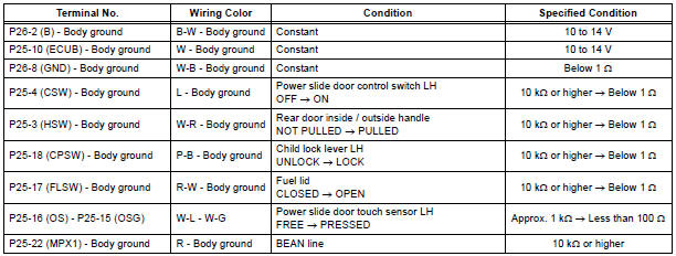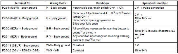 *6 Terminal SEL is used for distinction between the power slide door ECU LH and RH. Only terminal SEL of the power slide door ECU LH is grounded.