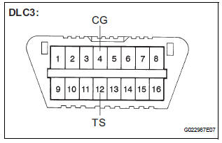 (c) After performing the check, disconnect the SST from terminals TS and CG, TC and CG of the DLC3 and turn the ignition switch off.