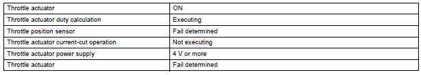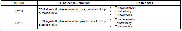 When either of these DTCs, as well as other DTCs relating to ETCS (Electronic Throttle Control System) malfunctions, is set, the ECM enters fail-safe mode. During fail-safe mode, the ECM cuts the current to the throttle actuator off, and the throttle valve is returned to a 6 throttle angle by the return spring. The ECM then adjusts the engine output by controlling the fuel injection (intermittent fuel-cut) and ignition timing, in accordance with the accelerator pedal opening angle, to allow the vehicle to continue at a minimal speed.