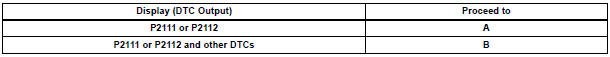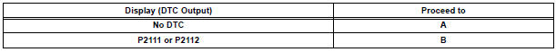 HINT: If any DTCs other than P2111 or P2112 are output, troubleshoot those DTCs first.
