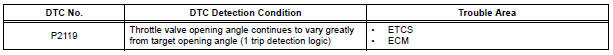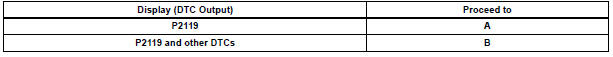 HINT: If any DTCs other than P2119 are output, troubleshoot those DTCs first