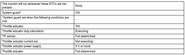 If the malfunction is not repaired successfully, the DTC is set when the accelerator pedal is quickly released (to close the throttle valve) after the engine speed reaches 5000 rpm by the accelerator pedal being fully depressed (fully open the throttle valve).