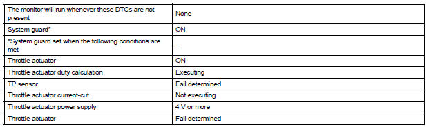 If the malfunction is not repaired successfully, the DTC is set when the accelerator pedal is quickly released (to close the throttle valve) after the engine speed reaches 5000 rpm by the accelerator pedal being fully depressed (fully open the throttle valve).