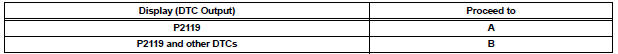 HINT: If any DTCs other than P2119 are output, troubleshoot those DTCs first.