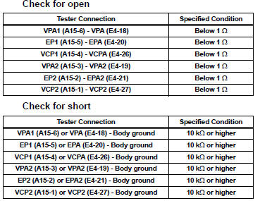 2 CHECK HARNESS AND CONNECTOR (ACCELERATOR PEDAL POSITION SENSOR - ECM)