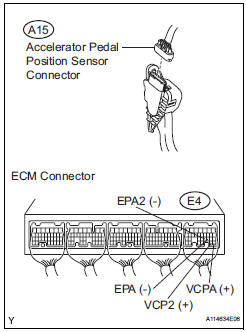 (a) Disconnect the A15 Accelerator Pedal Position (APP) sensor connector.
