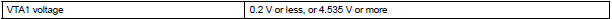 | P0123 | Output voltage of VTA1 is 4.535 V or more for 2 seconds (1 trip detection logic) |
