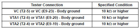| P0122 | Output voltage of VTA1 is 0.2 V or less for 2 seconds (1 trip detection logic) |