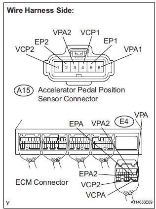 2 CHECK HARNESS AND CONNECTOR (ACCELERATOR PEDAL POSITION SENSOR - ECM)