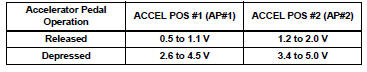 The accelerator pedal position sensor has 2 (main and sub) sensor circuits. If a malfunction occurs in either of the sensor circuits, the ECM detects the abnormal signal voltage difference between the 2 sensor circuits and switches to limp mode. In limp mode, the functioning circuit is used to calculate the accelerator pedal opening angle to allow the vehicle to continue driving. If both circuits malfunction, the ECM regards the opening angle of the accelerator pedal as being fully closed. In this case, the throttle valve remains closed as if the engine is idling.