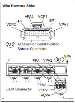(a) Disconnect the A15 Accelerator Pedal Position (APP) sensor connector.