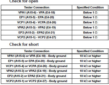 2 CHECK HARNESS AND CONNECTOR (ACCELERATOR PEDAL POSITION SENSOR - ECM)
