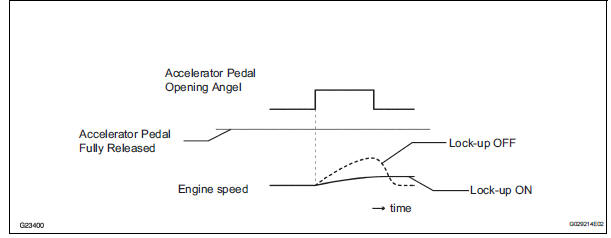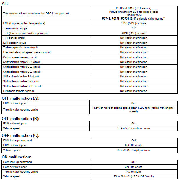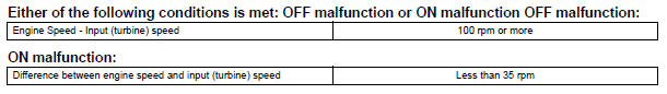 Then the ECM compares the engagement condition of the lock-up clutch with the lock-up schedule in the ECM memory to detect a mechanical problems of the shift solenoid valve DSL, valve body and torque converter clutch.