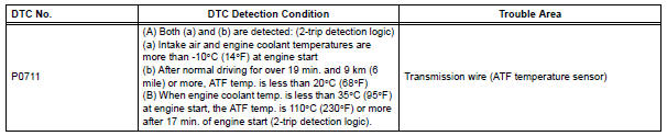 HINT: If a circuit related to the ATF temperature sensor becomes open, P0713 is immediately set (in 0.5 second).