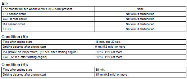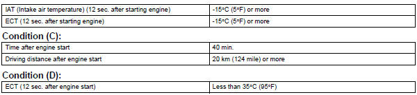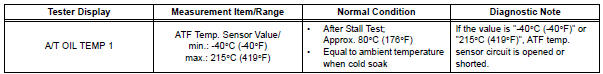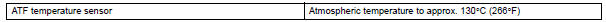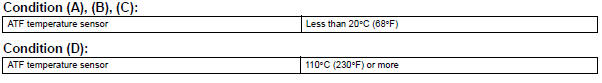 After running the vehicle for a certain period, the ATF temperature should increase. If the ATF temperature is below 20°C (68°F) after running the vehicle for a certain period, the ECM interprets this as a fault, and turns on the MIL.