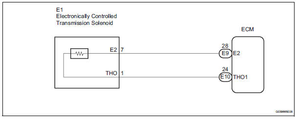 The ATF temperature sensor converts the ATF temperature to an electrical resistance value. Based on the resistance, the ECM determines the ATF temperature and detects an open or short in the ATF temperature circuit or a fault in the ATF temperature sensor.