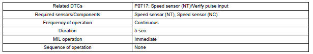 The NT terminal of the ECM detects a revolution signal from the speed sensor (NT) (input RPM). The ECM calculates a gearshift comparing the speed sensor (NT) with the speed sensor (NC).