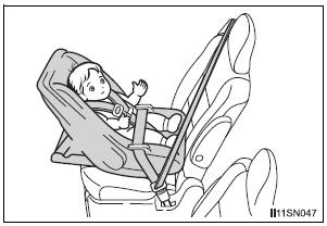 When children are in the vehicle Do not allow children to play with the seat belt. If the seat belt becomes twisted around a child’s neck, it may lead to choking or other serious injuries that could result in death. If this occurs and the buckle cannot be unfastened, scissors should be used to cut the belt. When the child restraint system is not in use