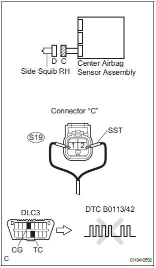 HINT: Codes other than DTC B0113/42 may be output at this time, but they are not related to this check.