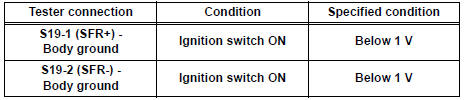 CAUTION: Never connect a tester to the front seat side airbag assembly RH (side squib RH) for measurement, as this may lead to a serious injury due to airbag deployment.